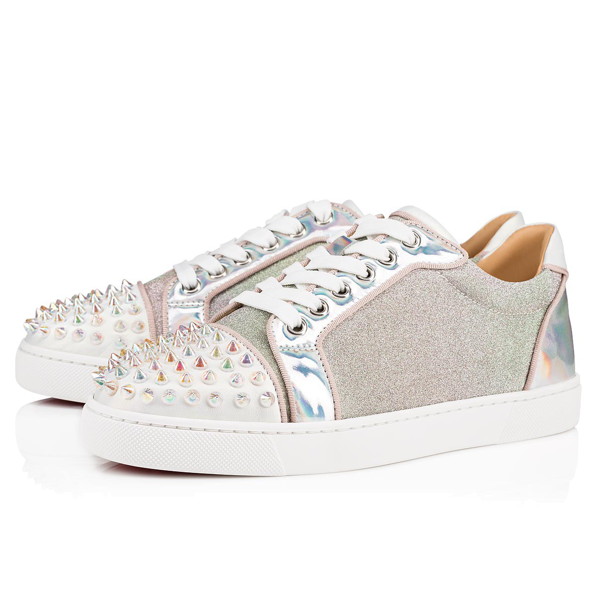 Christian louboutin, the french designer is famous in the luxury footwear market for his iconic bright red soles and daring stiletto each pair of christian louboutin sneakers brings out your edgier side. Discover more women shoes by christian louboutin. $1295 christian louboutin vieira spikes krystal flat multi sneaker shoes sz 39 9. Christian louboutin's 'fun vieira' sneakers have been made in italy from perforated white leather that's contrasted by red pvc trims, including a heel counter featuring the label's cursive logo. Christian louboutin paloma th mini.